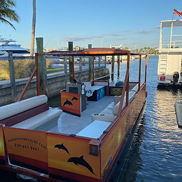Our turtles cruise through the waterways of Southwest Florida; home to the most beautiful beaches, abundant marine life, and never-ending sunshine. The turtles are our manmade boats that include an authentic tiki roof, wrap around bar and plenty of room to spread out and relax or party.